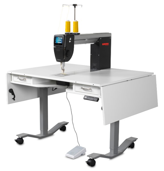 The BERNINA Q 20 comes standard as a sit-down model machine. The generous freearm depth and height provide ample space for managing your larger quilts. Take full advantage of the 20" freearm depth.