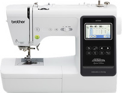 Loading... Please wait...Bring your runway inspirations to life with the Brother LB7000 sewing and embroidery machine. The LB7000 allows you to sew beautiful garments and add embroidery embellishments, creating a one of a kind pieces for yourself or others. This model features a large color touch LCD screen making it easy to see your embroidery designs and adjust them to your preference. With 103 built-in sewing stitches and 80 built-in embroidery designs the possibilities are endless. Sewing features include needle up/down and variable speed controls and drop feed for creative free-motion sewing. The expanded 6.4" w x 4.1" h needle-to-arm workspace allows more room for folding quilts and bulkier projects to the right of the needle, for easier sewing. Included are 7 quick-change sewing feet, with spring action zigzag, buttonhole, overcasting, monogramming, zipper, blind stitch and button sewing feet. The spring action zigzag foot is designed with a longer foot, and, combined with the longer 7-point feed dogs, help provide smoother fabric feeding.