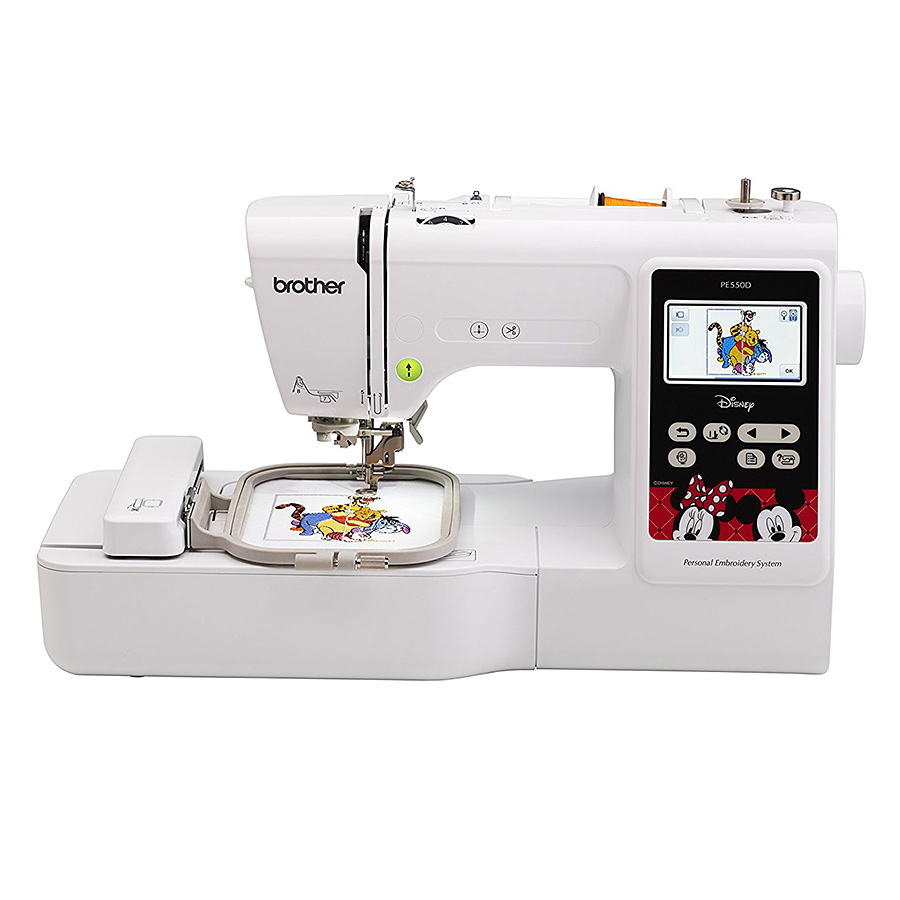 Loading... Please wait...The Brother PE550D Embroidery Machine brings the magic of Disney to your embroidery projects! This embroidery machine features a 4” x 4” embroidery field with 125 built-in decorative designs including 45 Disney embroidery designs. Also built-in are 9 fonts (6 English and 3 Japanese) for monogramming and personalization. Embellish your creations with Disney Mickey Mouse & Friends embroidery! The PE550D features a large, easy to view color touch screen so that you can see your designs and see them in alternate colors if you wish, before stitching it out. Adjust the built-in embroidery lettering fonts in multiple ways: Align text at an angle or in curves, place text on multiple lines, increase and decrease the spacing between letters, and more.