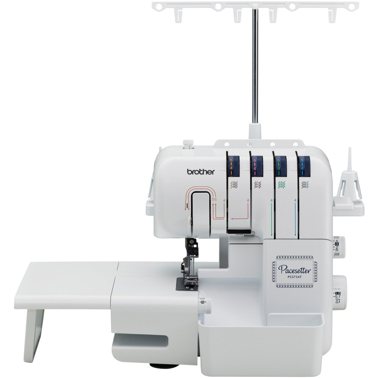 Loading... Please wait...The PS3734T is the finishing touch to your Pacesetter by Brother lineup. DIY-ers will love that it is a great value and easy to thread! The PS3734T features a brightly lit workspace for sewing in low light. It also comes with specialty feet; a blind stitch foot and a gathering foot, and a wide table to get you started on your sewing projects. The free arm allows you to serge sleeves and pant legs with ease. The color-coded thread guide is extremely helpful to quickly thread this machine. The trim trap collects your fabric as it cuts to keep your area neat. You can create more in less time with a sewing speed of up to 1300 stitches per minute on the PS3734T.