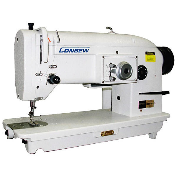 Consew 199R is a single-needle, drop-feed, zig-zag lockstitch machine with a horizontal axis transverse rotary hook, reverse feed, and combination zig-zag and straight stitch function.