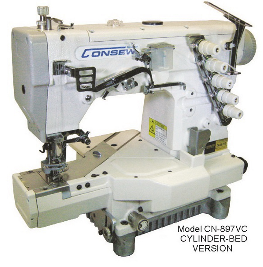 The Consew CN897CV-1 coverstitch machine contains a variety of features that include, but are not limited to: V-series High Speed Coverstitch Machines With Fully Automatic Lubrication, Differential Feed With Micrometric Adjustment, Pushbutton Stitch Regulator and Thread Lubricating And Needle Cooling System. Also available: CN-897BVC for Binding Attachments.