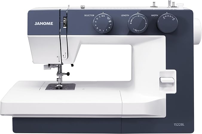 Loading... Please wait...The Janome 1522BL is a modern, beautifully designed electromechanical sewing machine that combines style with high-performance functionality. It is built around a solid metal frame for durability and stability, making it a reliable choice for a variety of sewing projects. The machine features an extra-wide sewing base, making it ideal for quilting and other large projects, while its free arm capability allows for easy sewing of cuffs and sleeves. It is designed to be user-friendly, with easy stitch selection and a range of features typically found on more advanced models .