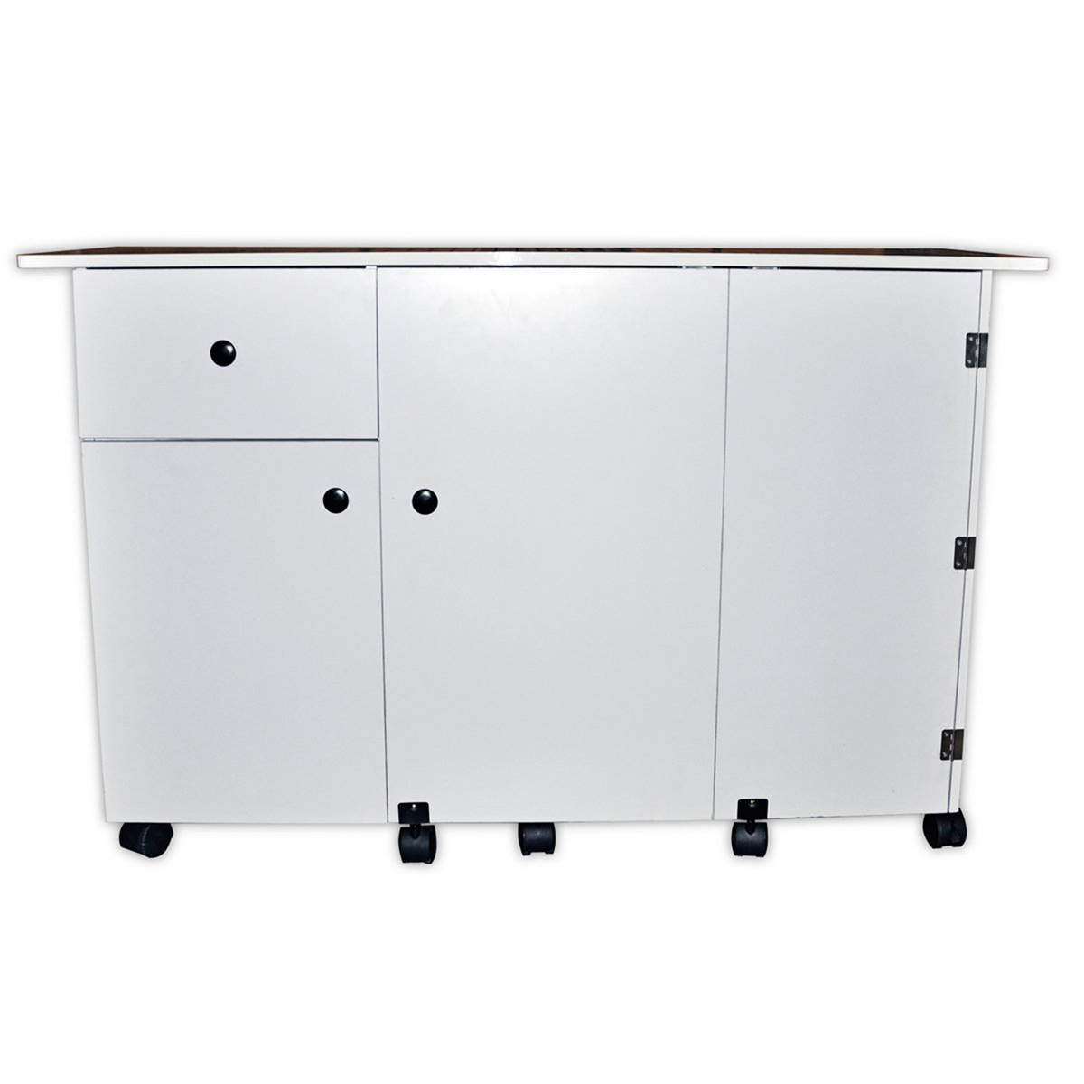 Loading... Please wait...The Sullivans Quilter's Design Table is a quilter's delight. It's equipped with a drawer to store your quilting, sewing or crafting supplies. Featuring a fold-out table with grids, it offers extra work space and also doubles as a roll-out serger storage shelf. This sturdy quilter's table is compact enough to fit snuggly in the corner of a room. Equipped with locking casters, you can easily move it from one room to another.
